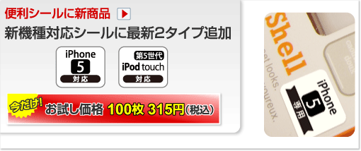 【バーコード屋さん】新商品の販売を開始 便利シール【新機種対応シール シリーズ 「iPhone 5 対応シール」と「iPod touch(第5世代)対応シール」】周辺機器・関連商品が対応可能なことをクールなデザインで一目瞭然に表示するシール。たび重なるバージョンアップにはパッケージを使い回しシール対応がお得。今だけお試し価格100枚315円も実施中