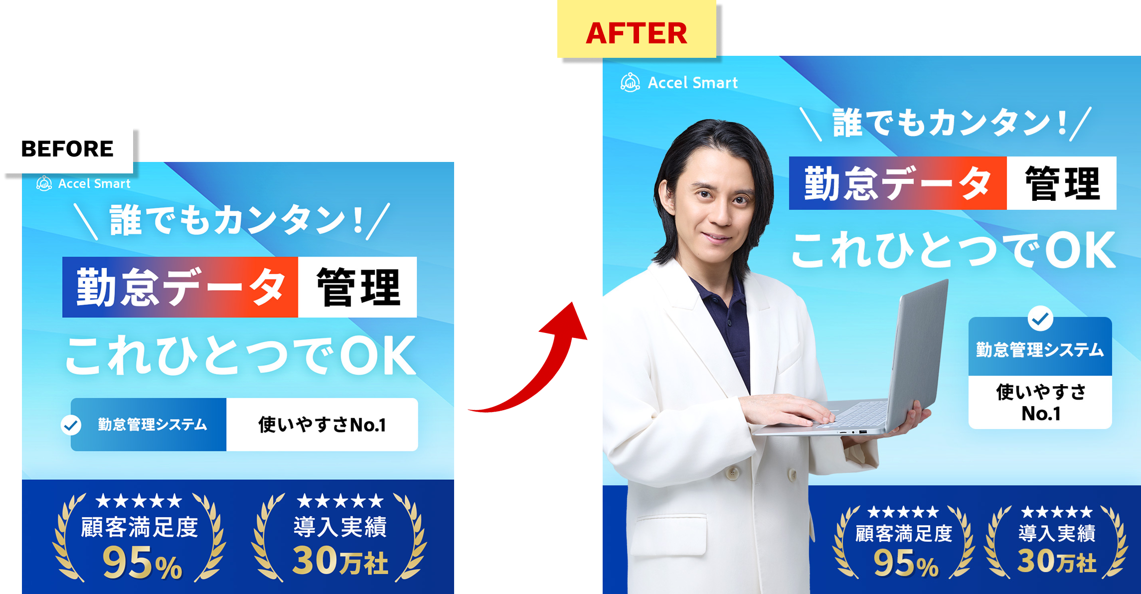 「アクセルジャパン」の素材で変わる、広告の印象(イメージ)