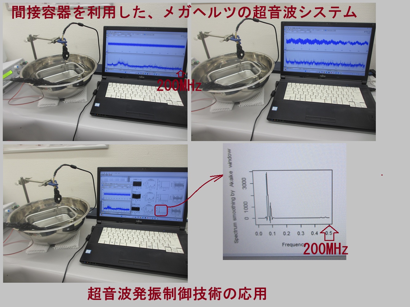 超音波システム研究所は、 超音波利用に関して、樹脂容器に メガヘルツの超音波発振制御プローブを取り付けることで、 600MHz以上の超音波伝搬状態の制御を可能にする 超音波システム技術を開発しました。